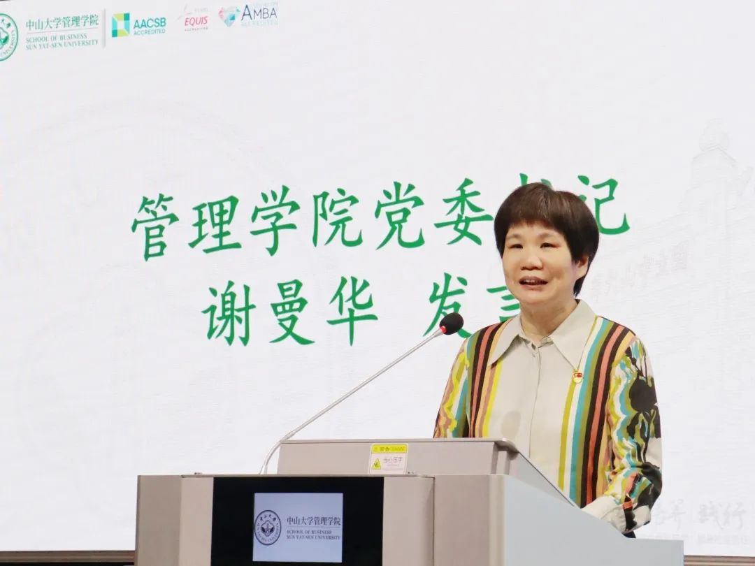 颁奖典礼中,谢曼华书记代表管理学院党委向莅临现场的嘉宾、评委、老师、同学们表示欢迎,并对突破层层选拔,最终站上决赛舞台的六支队伍表示由衷的祝贺。她对同学们提出两点希望。第一,志存高远、脚踏实地,努力运用课堂所学以及课外积累的知识解决现实问题,学以致用。第二,秉持“知行合一”的行动理念,彰显“学在中大,追求卓越”的校风学风,坚持德智体美劳全面发展,成为学习力、思想力、行动力卓越的能够引领未来的人。