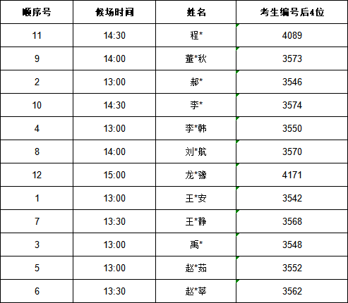 各考场顺序号原则上不予调整,如遇极特殊情况需变更,可在现场向签到老师提出申请