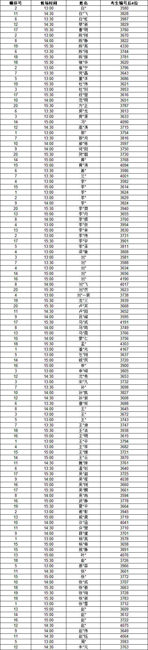 各考场顺序号原则上不予调整,如遇极特殊情况需变更,可在现场向签到老师提出申请