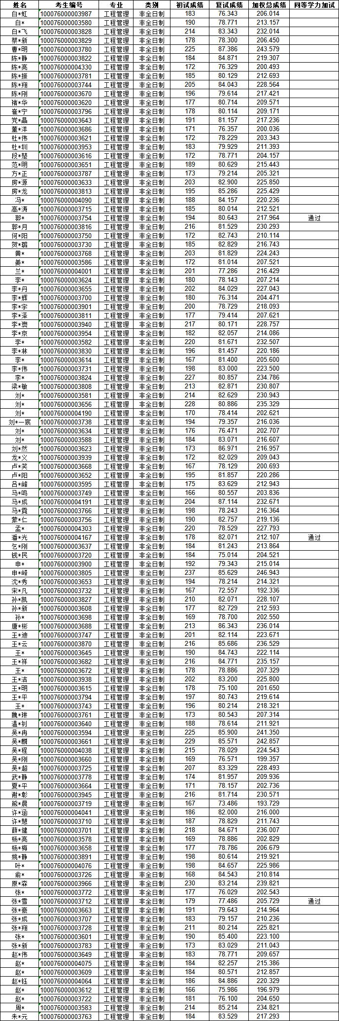 经过初试和复试工作,按照学校有关规定,现将2026年北京理工大学管理学院工程管理硕士(MEM)研究生拟录取考生的考生编号、专业、类别公示如下(以考生姓氏为序),最终录取名单以研究生院批准为准。所有拟录取的考生需参加政审,政审不合格考生取消录取资格,政审通知请见后续的另行通知。拟录取考生体检将在入学报到时进行。